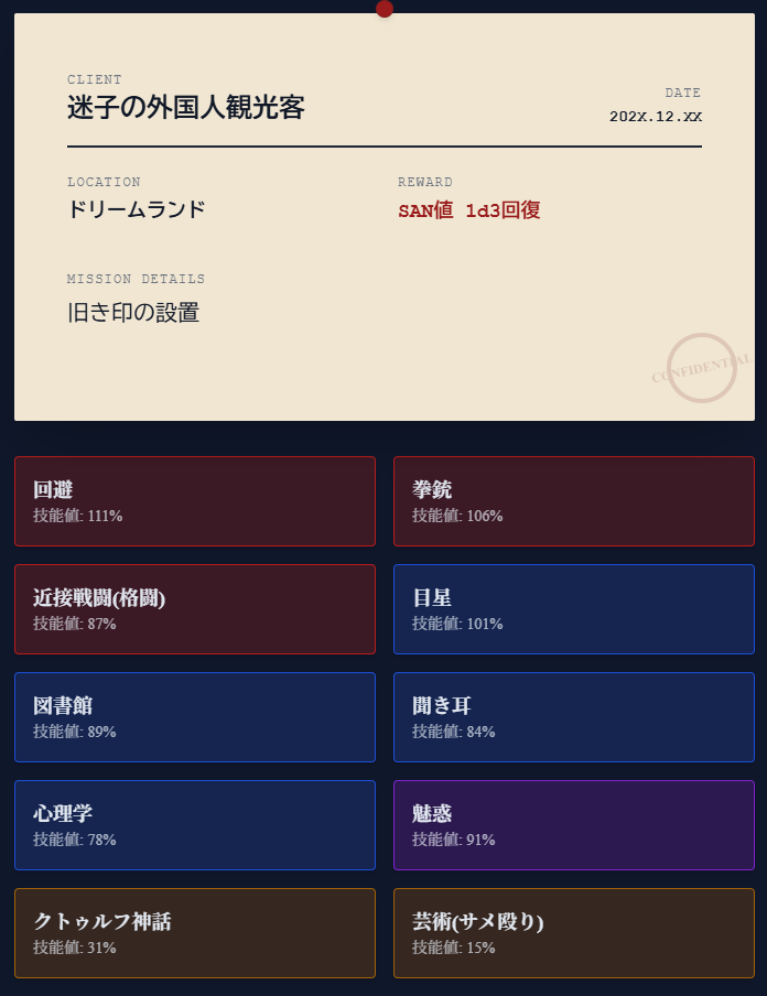 クトゥルフ神話TRPGの探索者「西野偵探」の