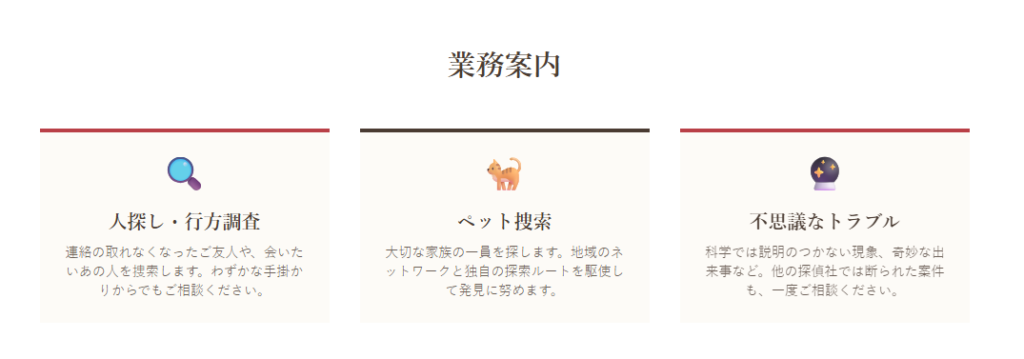 先程、ブログ上部に「西野探偵事務所Web支店」を追加しました!こちらからも移動できます。